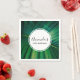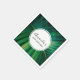 Birthday or other event paper napkins with a closeup photo of a green tropical leaf displaying some vibrant palm fronds. A white circle layered over top with your text inside.