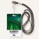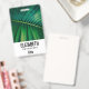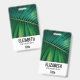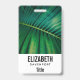 Personalised name badge with a closeup photo of a green tropical leaf displaying some vibrant palm fronds.