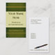 Simple and stately, this green leather bound book style business card is a perfect match for the author, editor, librarian or anyone in the field of words. Basic information on the front with plenty of room for all the other details on the back so as not to distract.