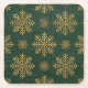 Green Leather Tooled with Gold Snowflakes Square Paper Coaster