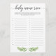 How many baby names do you know? Play Baby Name Race with this greenery baby shower game card. It is perfect for a neutral baby shower.