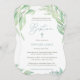 Spring foliage and modern calligraphy text inviting guests to this very special event.