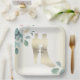 Green Leaves Flower Golden Frame Wedding Party Paper Plate. Unique, beautiful, stylish design. Easy to be personalized. Font style, size and colors can be changed. Matching items available.