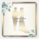 Green Leaves Flower Golden Frame Wedding Party Square Sticker