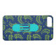 Green Leaves on Blue with Aqua Monogram Samsung or Case-Mate iPhone Case