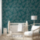 Green Leaves Regal Line Art Pattern Wallpaper