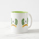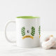Modern beautiful green leaves and golden ribbon on white Mug. Text can be personalised.