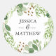 Thank you stickers with personalised with your names for your wedding favours, features green watercolor leaves. Matching designs are also available.