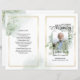 Beautiful and professional Funeral Program template with green leef Bakcground, easy to edit and print.