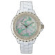 GREEN LILAC SWIRL MARBLE WHITE SPARKLE BAND WATCH