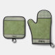 Green Linen and Gingham Check Personalised Oven Mitt & Pot Holder Set