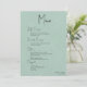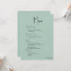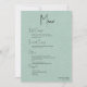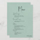 Whimsical minimalistic modern, customisable black script typography, elegant wedding menu. The light green colour linen printed texture background adds a touch of organic feel of classic elegance. Other colours are available.