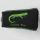 Green lizard icon with woodcut shading. Custom background colour. Custom text.
