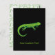 Green lizard icon with woodcut shading. Custom text. Seamless pattern at back side.
