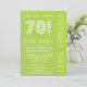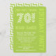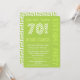 Our Green Look Who's Turning 70 birthday invitations are fun and colourful, featuring a big 30 of green and white chevron stripes with a chevron striped invitation back, a green background on front with pale green and white text that is easy to customise with all your birthday party specifics.