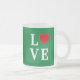Green LOVE and Heart Frosted Glass Coffee Mug