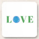 Green Love Coaster Set with Blue Pickleball Design
