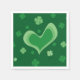 Green lucky clover St Patrick's Day party napkins. Lucky four leaf clover design with big heart. Add your opwn personalised text. Great for home dinner party, bar, pub, cafe, office and more. Custom Irish pride print with shamrocks.