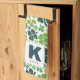 Green Lucky Shamrock Clover Pattern Monogrammed Tea Towel