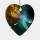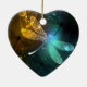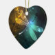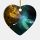 Flight of glowing, green, artistically drawn dragonfly with transparent green and yellow wings on glowing night background with marsh plants and fireflies. Glowing dragonfly.