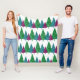 Green Magenta Teal Watercolor Trees Pattern Fleece Blanket