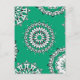 A post card featuring my Mandalas Pattern 1, printed on a Green background.
