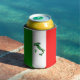 Here's a can cooler for lovers of Italy and all things Italian. It features a hand-drawn map of Italy superimposed on the Italian flag.