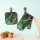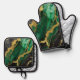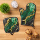 Green Marble Pattern with Gold Oven Mitt & Pot Holder Set