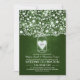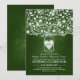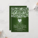 Beautiful dark green wedding invitation with mason jar full of flower blossoms, leaves, tree branches and glowing love hearts. Perfect casual invite for your rustic country wedding with floral mason jars.