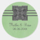 Regal and elegant Medallion Border Wedding Stickers featuring a digital art metallic medallion and a three stripe border on a light green background. These bold and stylish wedding stickers are perfect for an equally bold and stylish wedding and are great for favours or envelope seals. Easy to customise, simply add the details of your wedding in the text fields provided. Click on "Customise It" to find additional personalisation options such as changing fonts or text size.