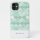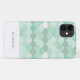 Green circle pattern with circles in an overlapping geometric wave pattern in a row in various shades of green with marble and sparkle texture. Colourful mermaid scales in a variety of shades with a white stripe that can be personalised with name or initials in dark green sans font.