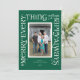 This modern festive holiday card features the words "merry everything and a happy always" framed around a single photo on the front. It has space for a second photo on the back. The front of the card also has space for your name and the year.