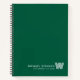 Elevate your daily planning with this modern minimalist notebook, designed in a clean GREEN-and-white color palette that suits both professional and personal use. Your custom name appears in the lower right corner in a refined line-style font, paired with a striking monogram initial created in the distinctive Monoton typeface. With its simple, contemporary layout this personalized notebook stands out for its sleek, stylish design. Perfect as a custom business notebook, journaling companion, or thoughtful personalized gift, it offers fully customizable text and monogram options to match your unique style. Ideal for professionals, students, creatives, and anyone who loves modern stationery.