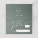 Minimal and simple table number place card for your wedding featuring a modern script font that says "table" with a blank line where you can fill in the table number and the guest's name. You can add the bride and groom's names on the back. The background colour is forest green.