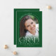 This green simple minimalist arch graduation announcement features a delicate arch frame, 2 photo templates and elegant modern typography.