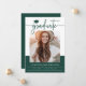 Green Modern Graduation Announcement. Celebrate your graduate’s achievements in style with this green and white graduation announcement, featuring a simple, minimalist, classic, modern layout. Designed in dark forest green and white, this announcement includes an elegant script that spells out "graduate" in hand-lettered calligraphy, perfectly paired with a cute illustrated graduation cap for a playful yet refined touch. The large photo layout allows you to showcase your graduate’s personality, while the clean lines and balanced typography keep the focus where it belongs. Whether displayed on the fridge or tucked into a keepsake box, this announcement makes a lasting impression. Make it uniquely yours—start personalising your perfect announcement today.