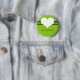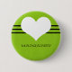 Sweet and charming Modern Heart Button featuring a chartreuse green background and a cute heart and striped border. This cute and girly button will add style to anywhere you pin it. Customise with the text of your choosing. Click on "Customise" to find additional personalisation options.