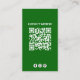 This design features a green modern minimalist business card, with a scannable QR code for social media, a simple minimal, add your photo or logo, with your website, contact details, email phone, and mobile number, a bold professional, trendy chic style.