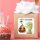 These cute Halloween stickers feature a green monster hand reaching up from the ground. Beside the spooky hand is a grinning Jack o' Lantern. The black text at the top says "Happy Halloween", with a little black spider hanging from it. Your custom text is below the greeting. Cute, especially for kids, or for any Halloween celebration, to seal treat packages, correspondence, or for use in your Halloween table decorations.