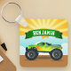 Green Monster Truck Personalised Name Kids Room Key Ring