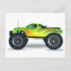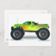 This item features a cool green monster truck with orange flames painted on its side and starred hubcaps. Makes a great gift!