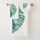 Green Monstera Leaf Watercolor Bath Towel Set