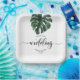 Green Monstera Leaf Wedding welcome Paper Plates