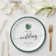 Green Monstera Leaf design. This Wedding welcome paper plate template combines two size of font for more dynamic look.