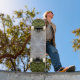 Custom, cool digital art photography pattern of furry green moss and textured sandy marble earth.