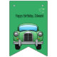 Fun party bunting with a picture of a green car - the text can be customized to anything you would like. You can change it yourself.