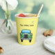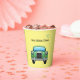 Fun party paper cup with a picture of a green car - the text can be customized to anything you would like. You can change it yourself.