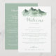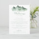 This green mountain country wedding welcome letter is perfect for a rustic wedding. The design features a watercolor hand-painted green mountain, inspiring a countryside theme.