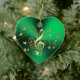 Green Heart Gold Music Notes and Clef Christmas Ornament. A gold flowing staff of musical notes and treble clef on a metallic Christmas green background. A great gift this holidays for your favourite musician or dance lover.