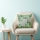 A modern design pillow featuring a geometric mosaic pattern with subtle watercolor effects inspired by nature in green colours. You can edit or delete the monogram text.